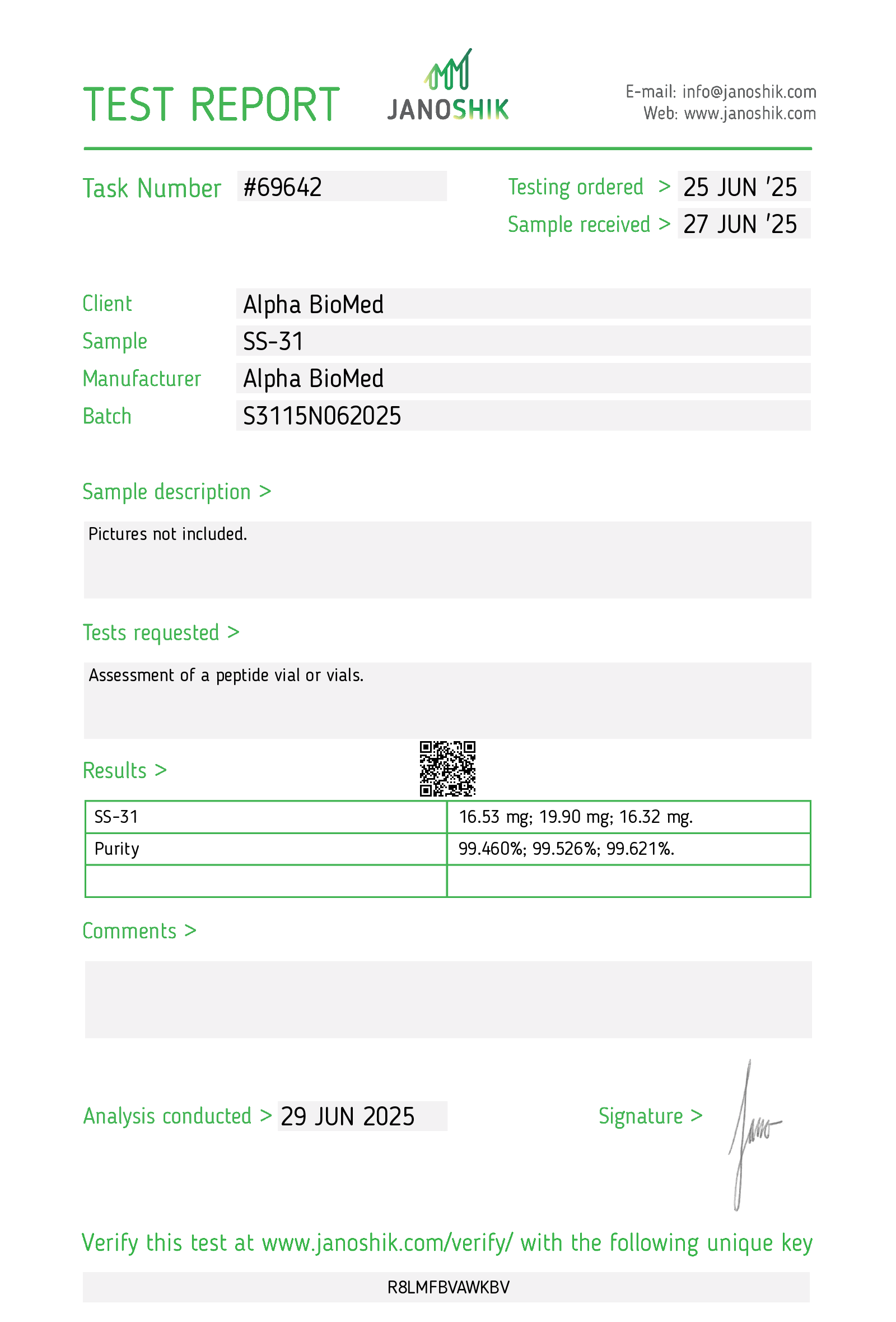 Comprising a specific amino acid sequence, SS-31 is engineered to penetrate mitochondria and provide comprehensive protection against oxidative damage. Over extended usage periods, SS-31 has demonstrated its potential to improve endurance, support cardiovascular health, enhance cognitive function, and reduce the risk of age-related diseases. The diverse effects of SS-31 highlight its potential as a versatile agent in promoting overall health and longevity.