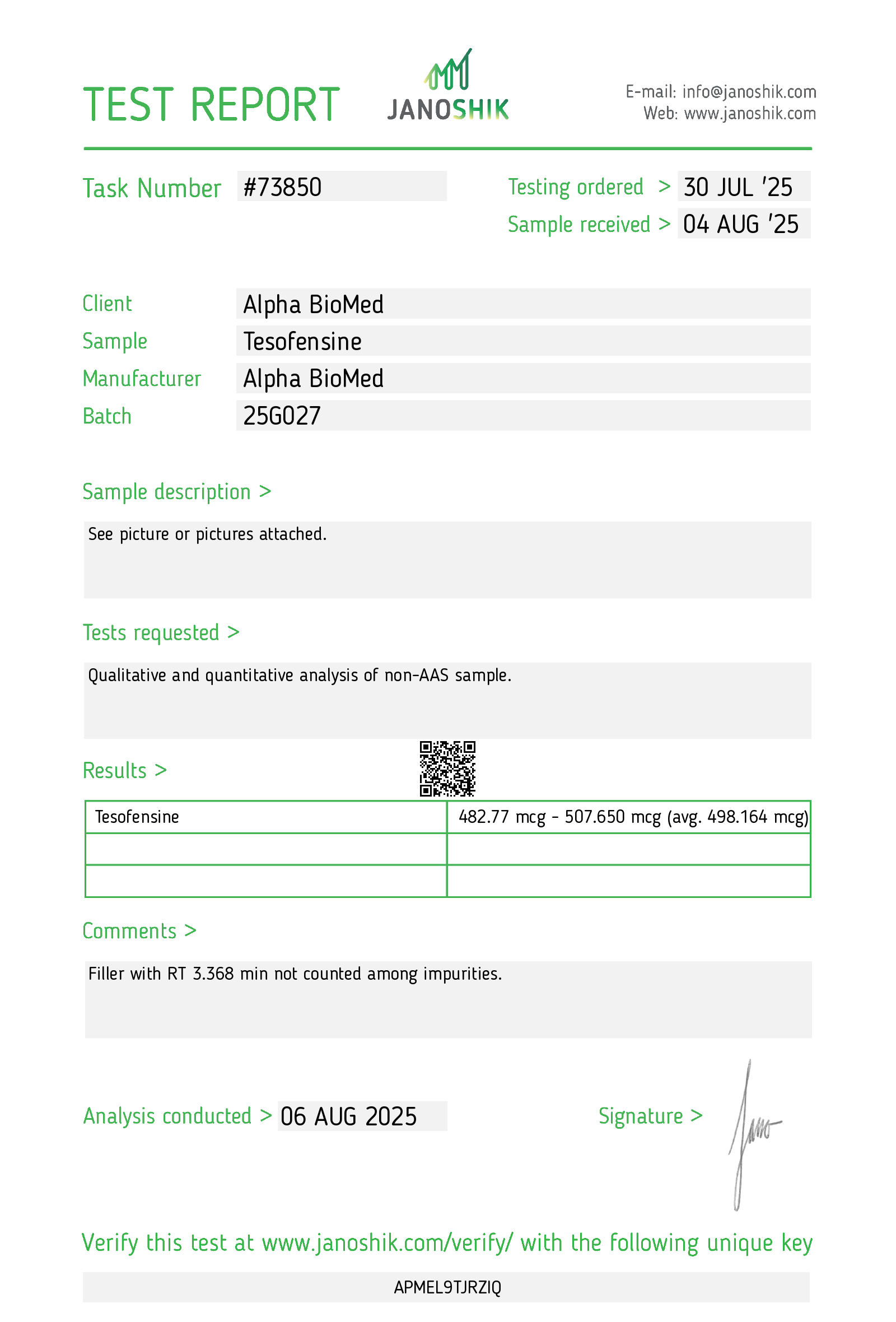 Issued under Alpha Bio Med Labs, the authorized testing and distribution partner